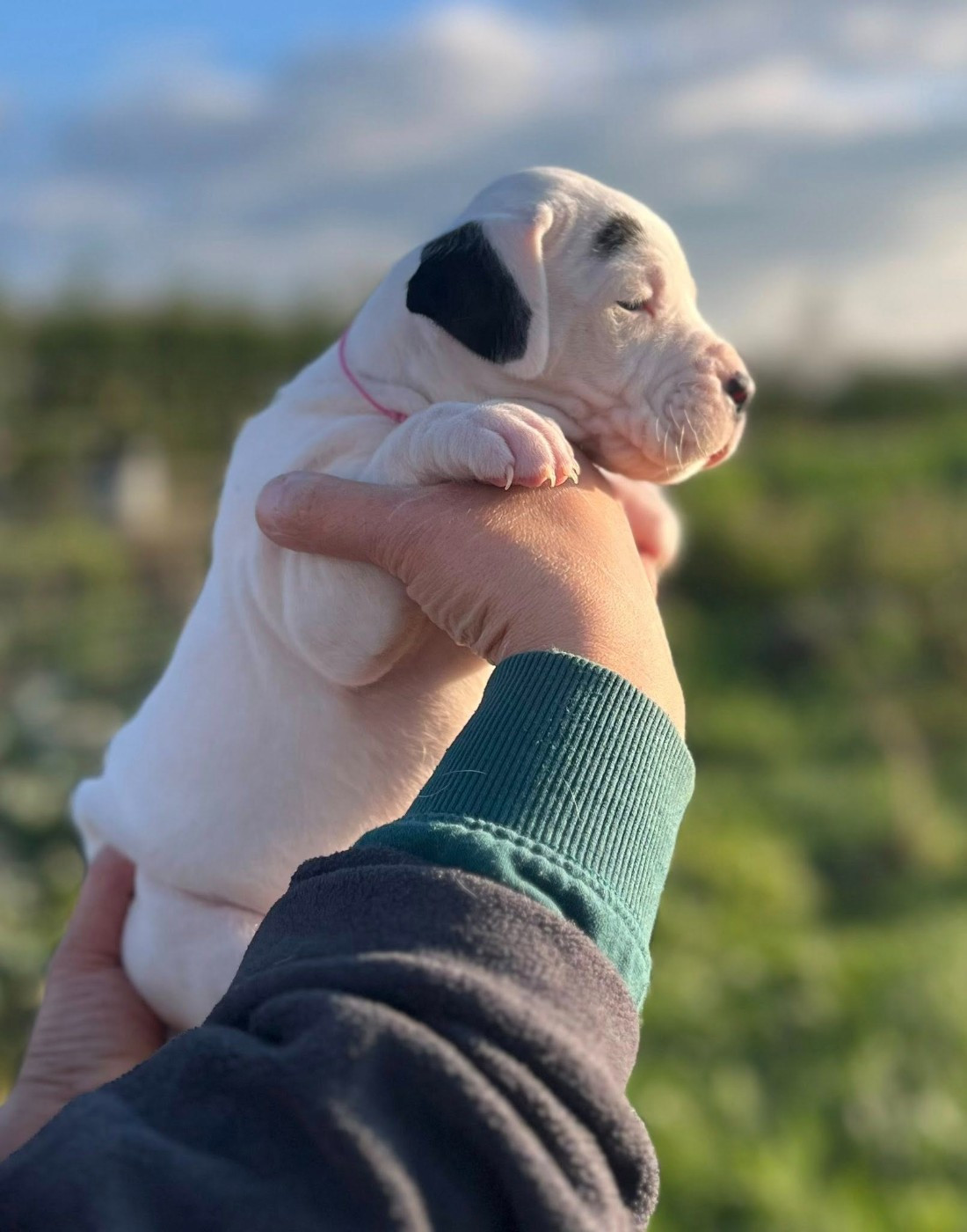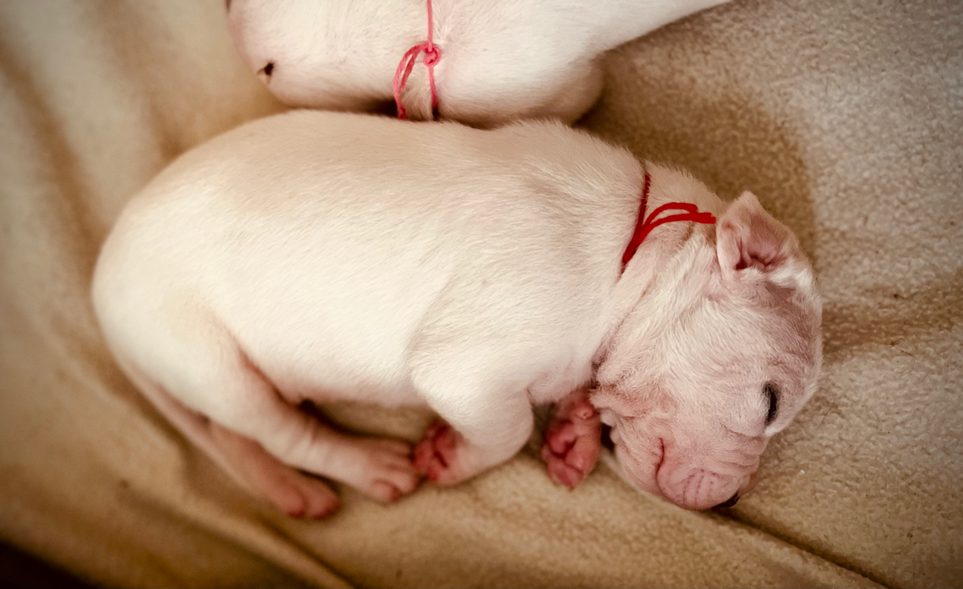 Les chiots partent de l'élevage : pucés ; vaccinés ; vermifugés ; testés surdité (excepté les non confirmables) ; couverts gratuitement pendant 2 mois c/ Accidents.   Et ils partent avec :  leur carnet de santé (ou passeport si départ pour l'étranger) ; leur certificat de bonne santé délivré par le vétérinaire ; leur dossier sanitaire individuel (avec leur courbe de croissance, leur suivi depuis leur naissance, les vaccinations et vermifugations effectuées et à effectuer, leur rapport de test de surdité, la copie des tests des parents) ; un kit chiot ; un collier de fabrication artisanale.