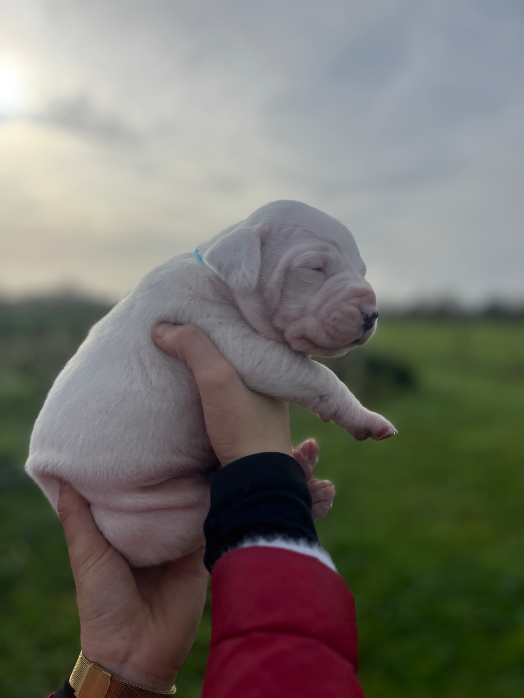Il sera testé surdité à 6 semaines (si toutefois il s'avérait être entendant unilatéral, il sera vendu 1.250 E avec un remboursement de 100E si stérilisation avant son premier anniversaire.)